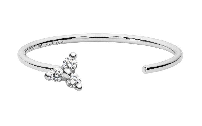 Redline全新的Glitter系列 戒指 再一次推出全新的指间戒的设计,镶3颗0.042克拉的钻石在全新的设计上,在保留简约的Redline 风格的同时,添加了新的创意。