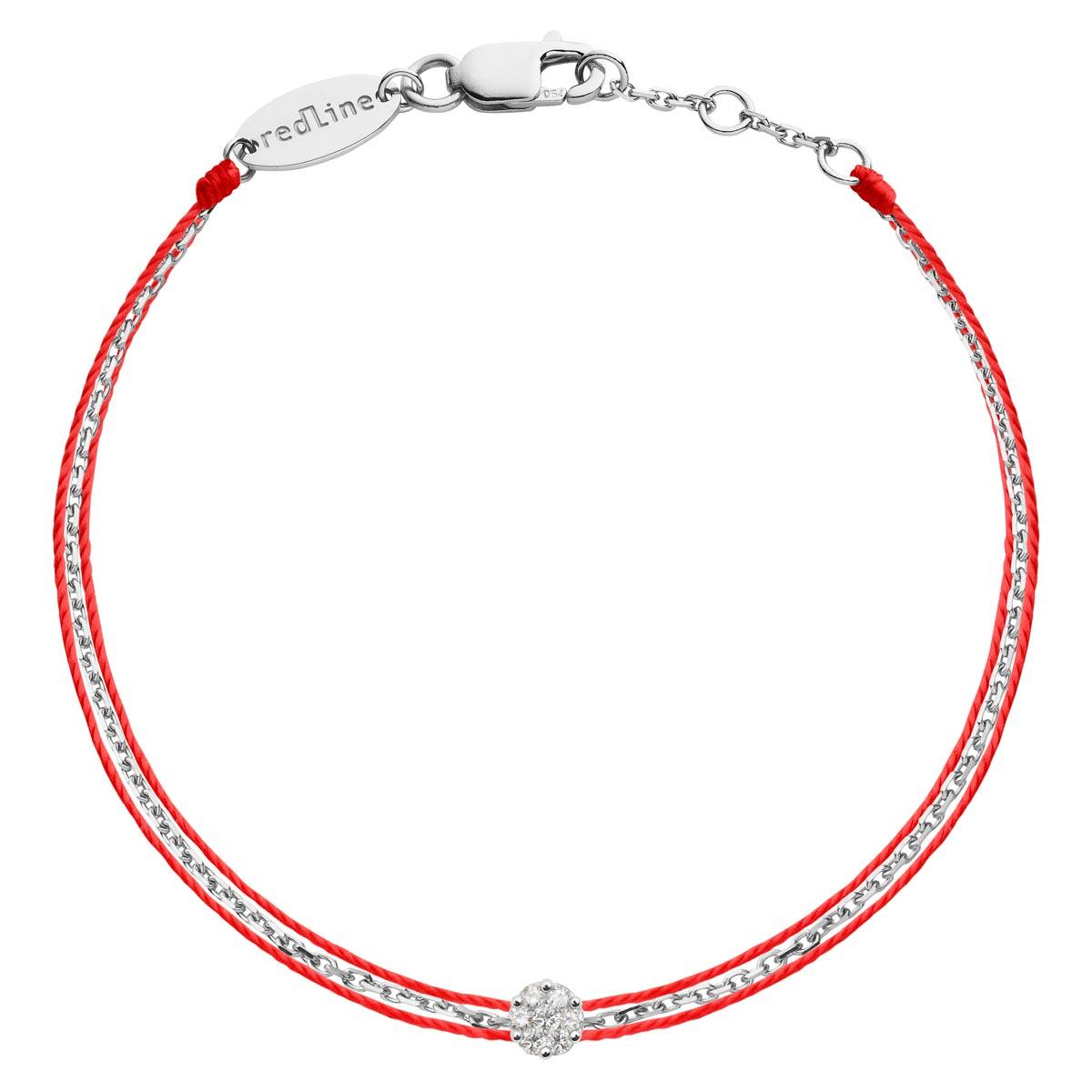 7颗共0.05克拉的钻石镶嵌在一起,演绎RedLine红绳这件非同凡响的首饰。钻石绽放着耀眼的光芒,给人一颗单钻的错觉。一条金链、两条绳线和永恒的钻石完美相结合,款式新颖别致。18K金的搭扣和三环延长链使首饰可以随意调节长度。首饰有白金、黄色金和80种颜色的绳线供选择。