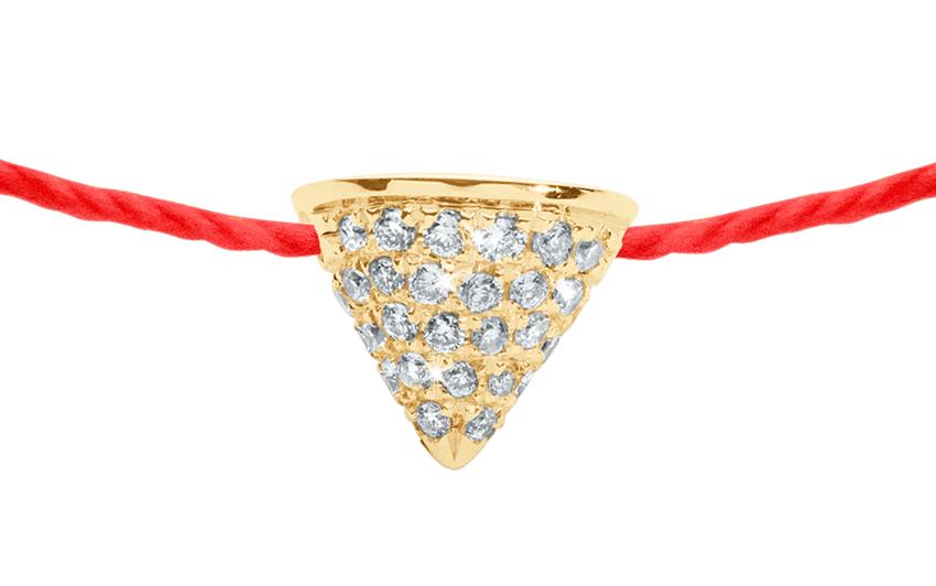 Redline 全新推出的 Punk系列 红绳手链,采用的全新的三角形的设计结构,镶嵌着多颗钻,零星的钻石虽然没有大钻的奢华,但却带来一股清新自然的感觉,多种颜色的绳可选,3种颜色的18K金可选。