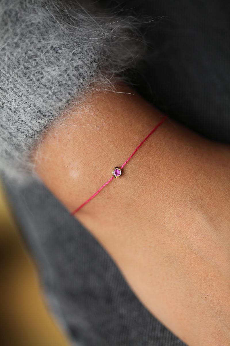 RedLine红绳独特款,Pure Saphir Rose粉蓝宝石黄金款细绳手链。