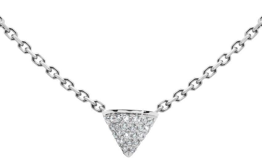 Redline全新推出的Punk系列 全链项链,在全新的三角形设计结构中镶嵌着多颗钻石,简单的设计轻盈的质感,钻石的炫目华彩令她纯美娴淑的气质更加锦上添花,3种颜色的18K金可选。