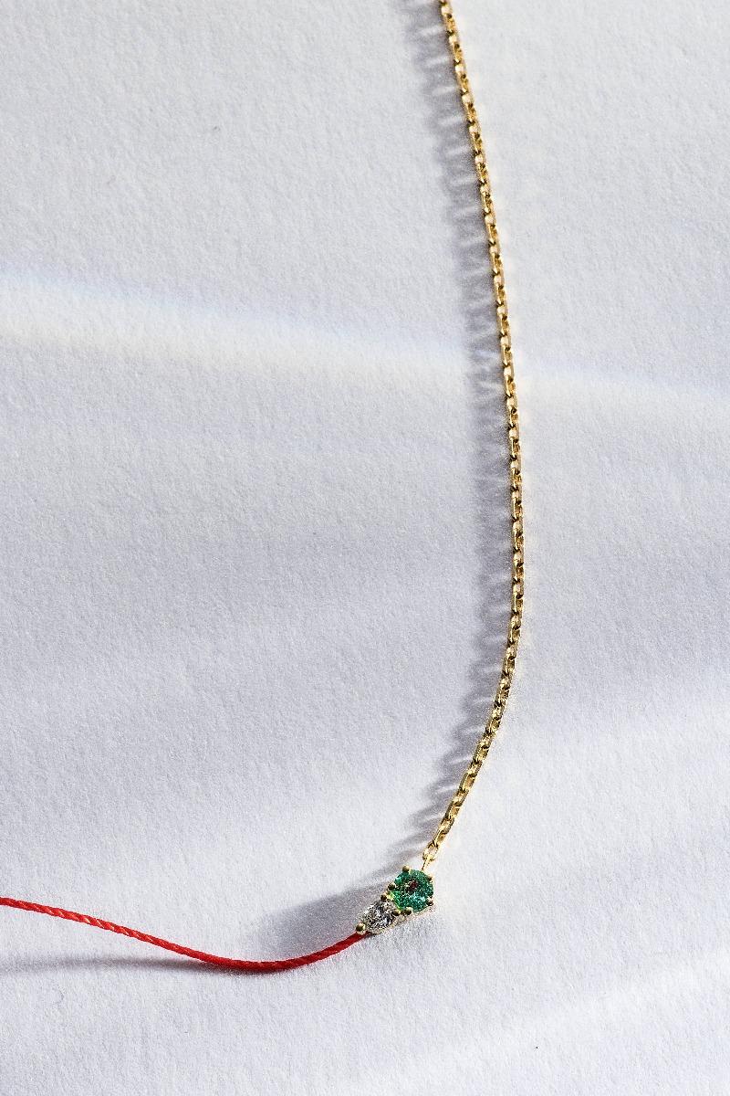 Redline的 Abby 祖母绿半线半链黄金项链体现了精致优雅与永恒华丽。纤细的红绳与黄金链条和谐搭配,闪耀着微妙的现代光芒。迷人的祖母绿为其增添了一抹鲜活的色彩和精致感。每一个细节都由 Redline 的专业工匠精心打造,使这款手链成为集现代创新与永恒魅力于一身的非凡之作。这是一款超越潮流的珠宝,彰显了 Redline 对卓越工艺和永恒之美的承诺。